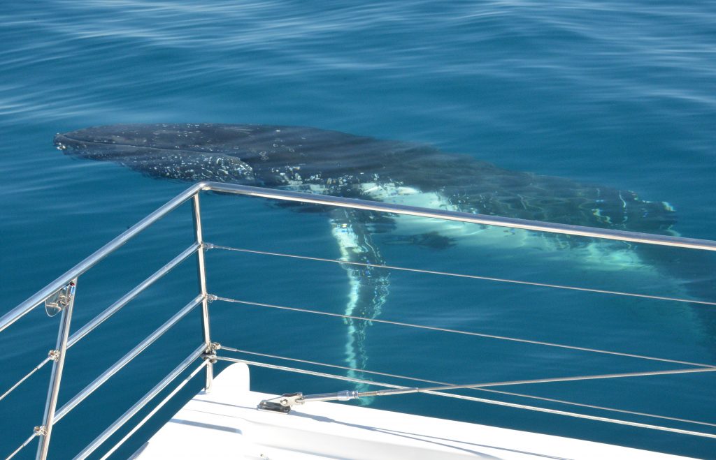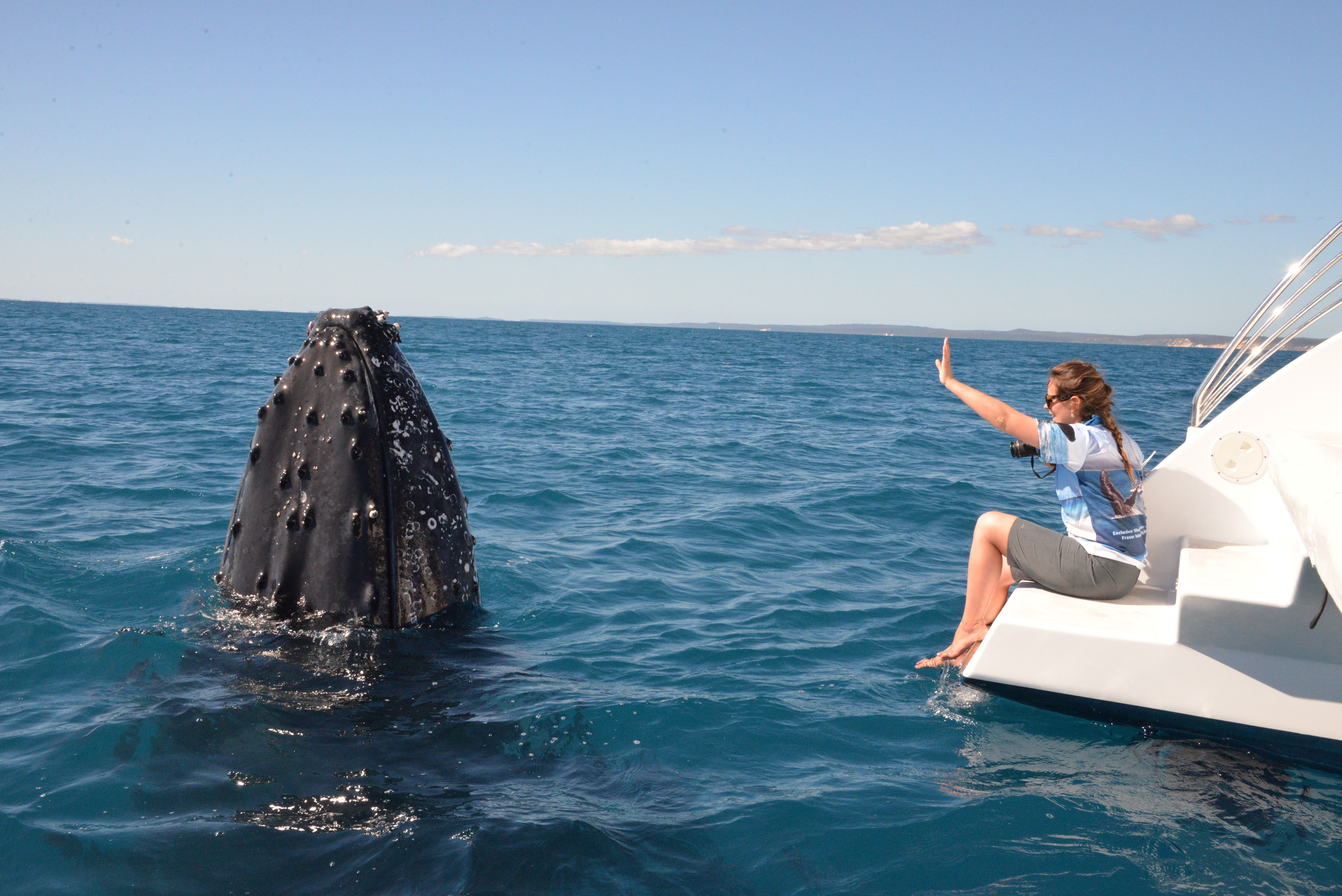 In addition to keeping everyone fed and watered and expertly balancing trays of cakes and fresh fruit in rocky conditions, the crew know a thing or two about Hervey Bay’s resident humpback whales. In fact, they know almost everything about the whales, including how to spot them, how to keep them interested – and how to photograph them.