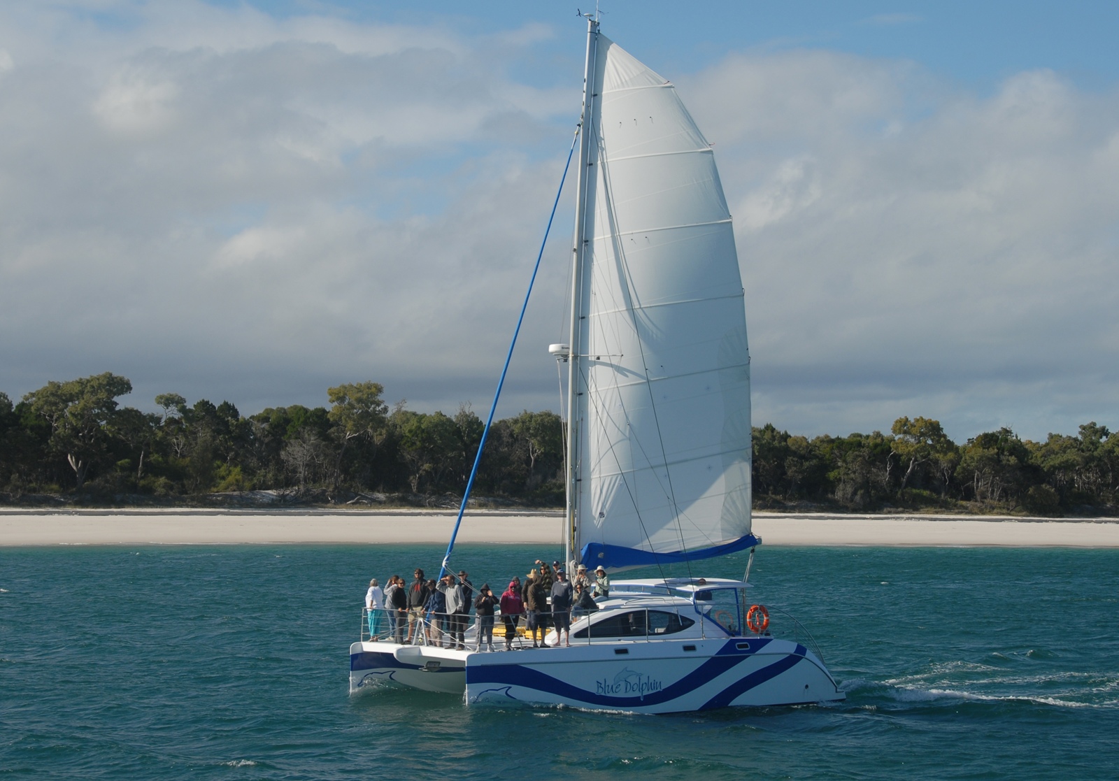 Hervey Bay will play host to the humpbacks next July – but what if you fancy a boat trip in the meantime? What does Blue Dolphin do for the other eight months of the year? The good news is, the whales left us not only with beautiful memories but also the opportunity to resume our Fraser Island Eco-Sailing Adventure and Champagne Sunset Sail tours.