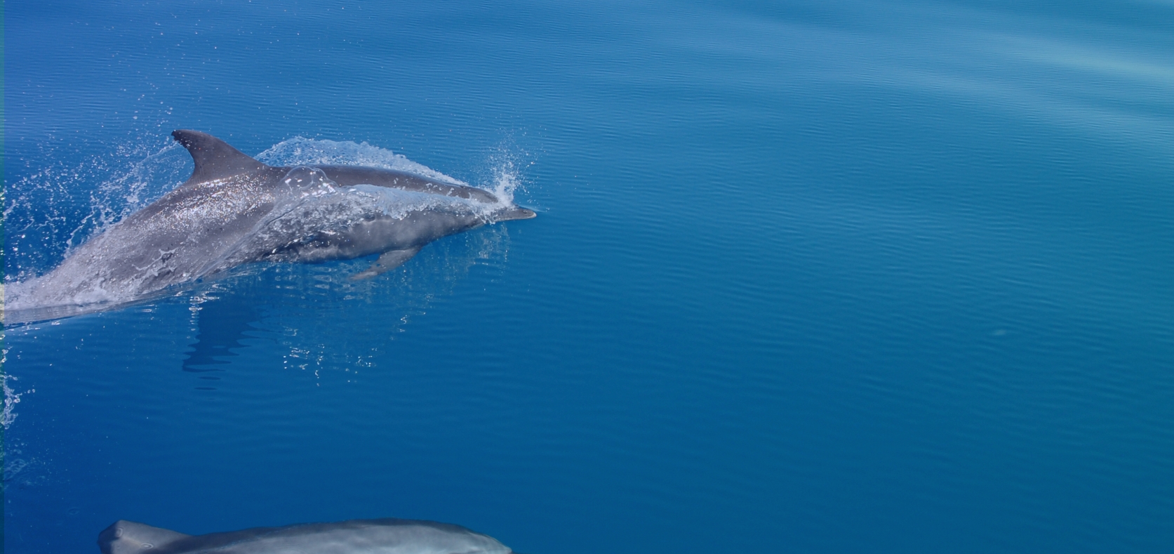 Dolphins are often regarded as one of Earth’s most intelligent animals, demonstrating social behaviour and a display of culture similar to humans. Witnessing them in their domain offers a unique insight into their underwater world, beautiful and graceful as they are. Bottlenose dolphins are the better known of the two species – their back is dark grey whilst their belly is a lighter grey or white with grey spots.